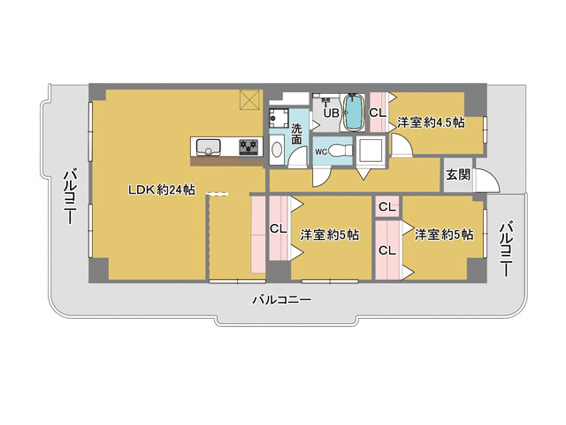 3面バルコニー